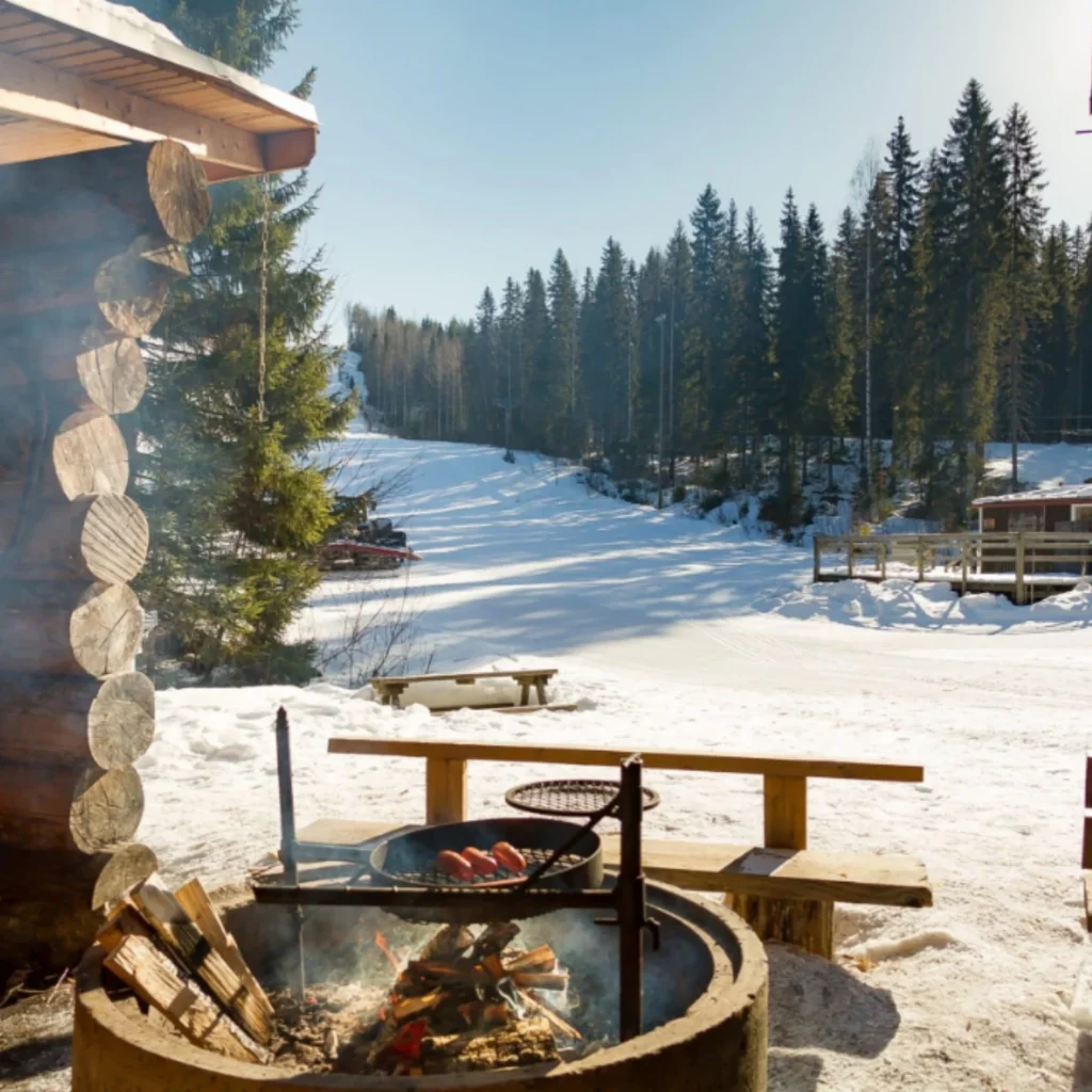 Hissien ollessa auki, voit käydä kysymässä takarinteen hissivalvojalta saisiko laavulle tulet. Muina aikoina retkelle lähtiessä ota omat puut mukaan. Hissivalvojalla saattaa olla myydä joskus myös makkaraa, jos olet unohtanut omat evääsi kotiin 🙂