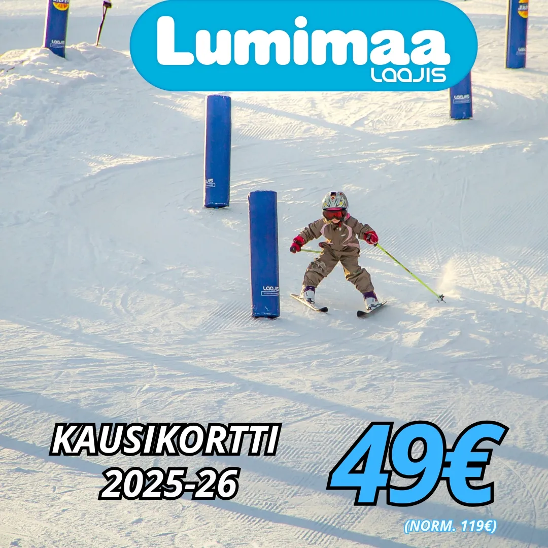 Lumimaan 2025-26 kausikortit nyt myynnissä edulliseen ennakkohintaan 49€ (norm. 119€). Lumimaan kausikortit ostettavissa netistä tai paikan päältä Laajiksesta.